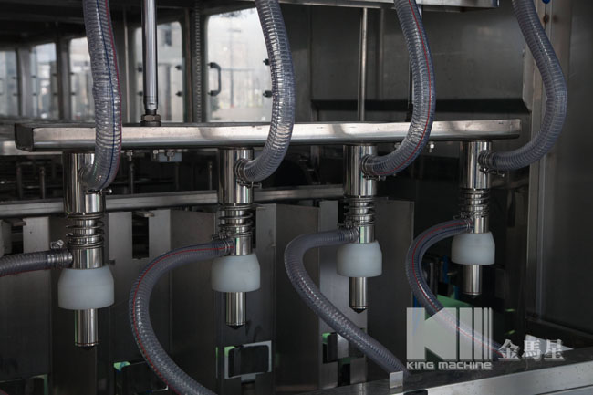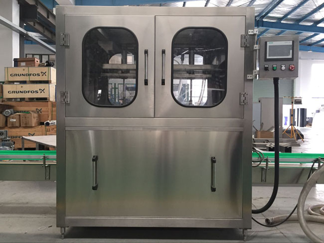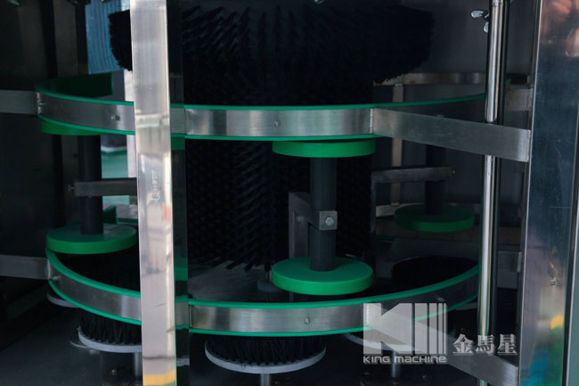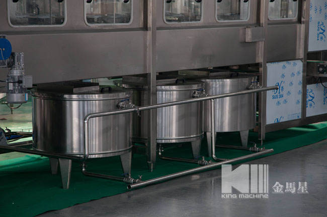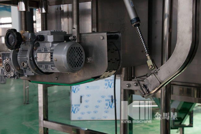 本灌裝生產(chǎn)線專用于3-5加侖桶裝水的灌裝,型號(hào)包括了QGF-100,QGF-240,QGF-300,QGF-450,QGF-600,QGF-900,QGF-1200。合消毒、沖洗、灌裝、壓蓋四為一體。沖洗機(jī)采用了多種洗液以及消毒液對(duì)瓶子進(jìn)行清洗以及消毒,消毒液能夠循環(huán)使用。瓶蓋會(huì)在清洗和消毒后運(yùn)至旋蓋機(jī)自動(dòng)進(jìn)行旋蓋。本產(chǎn)品功能齊全,涵蓋了清洗、消毒、灌裝、旋蓋、計(jì)數(shù)等功能,高度自動(dòng)化,實(shí)為飲料生產(chǎn)廠家理想的優(yōu)選設(shè)備。