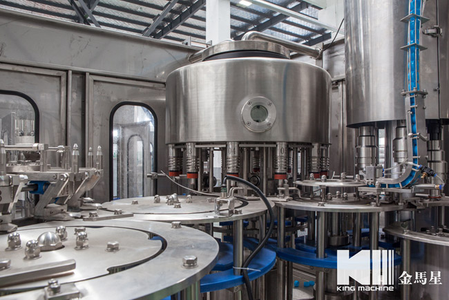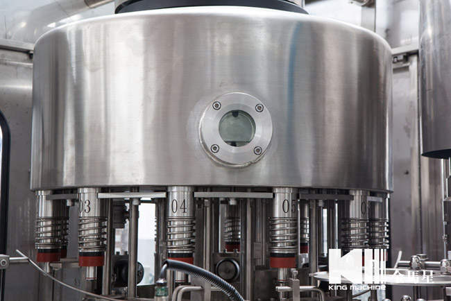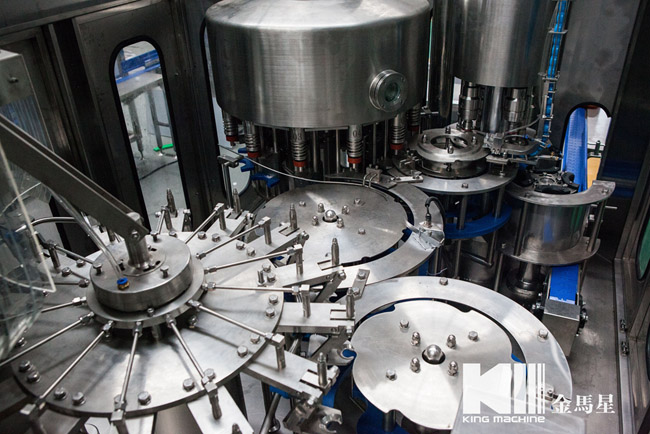 飲用水灌裝機(jī)集沖洗、灌裝、旋蓋于一體,全過程自動(dòng)化運(yùn)行,主要適用礦泉水、純凈水等不含氣飲料的沖瓶、灌裝、封口連續(xù)作業(yè)。本機(jī)大部分電器系統(tǒng)零件均采用國外優(yōu)良產(chǎn)品,所有與液料接觸的地方均采用優(yōu)質(zhì)的不銹鋼材料制作,主關(guān)鍵部件采用數(shù)控機(jī)床精密加工, 整機(jī)光電檢測各部件的運(yùn)行狀況,無瓶不灌裝,無瓶不送蓋,自動(dòng)化程度高,操作簡易,具有耐磨、穩(wěn)定、故障率低等特點(diǎn),產(chǎn)品質(zhì)量處于行業(yè)前列,是新老飲料投資者的選擇。