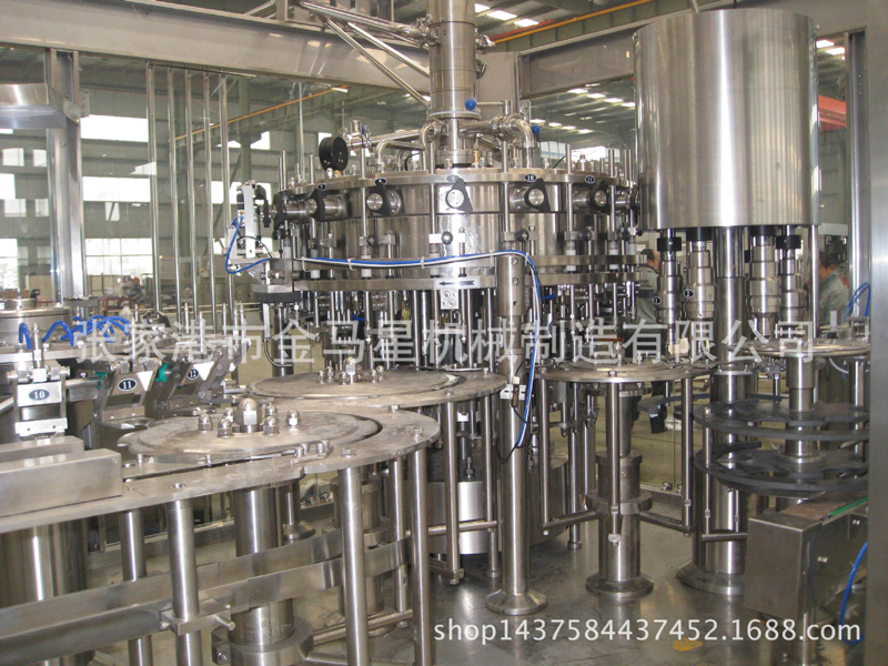 本設(shè)備主要用于含汽飲料灌裝,包含沖瓶灌裝和旋蓋三大主要功能。本設(shè)備實(shí)現(xiàn)全自動(dòng)運(yùn)行,能夠適應(yīng)PET瓶含汽果汁、含汽礦泉水及可樂(lè)與雪碧等灌裝。瓶型適應(yīng)性強(qiáng),更換瓶型時(shí)操作簡(jiǎn)單快捷。灌裝方案中采用了等壓灌裝原理,灌裝快速穩(wěn)定,液位準(zhǔn)確,含汽量足。與同類設(shè)備相比,本公司產(chǎn)品產(chǎn)量高,運(yùn)行穩(wěn)定安全,故障率低,自動(dòng)化長(zhǎng)度高,價(jià)格經(jīng)濟(jì)實(shí)惠。全機(jī)采用優(yōu)良可編程控制器(PLC)來(lái)控制設(shè)備的自動(dòng)運(yùn)行,送瓶系統(tǒng)由變頻器改變速度,更加穩(wěn)定可靠。每個(gè)部分都有光電單元進(jìn)行監(jiān)測(cè),所以更加自動(dòng)化,操作更加便捷。在此基礎(chǔ)上,更換灌裝單元即可改變灌裝模式到低壓真空灌裝和等壓灌裝等。本設(shè)備是飲料企業(yè)的選擇。